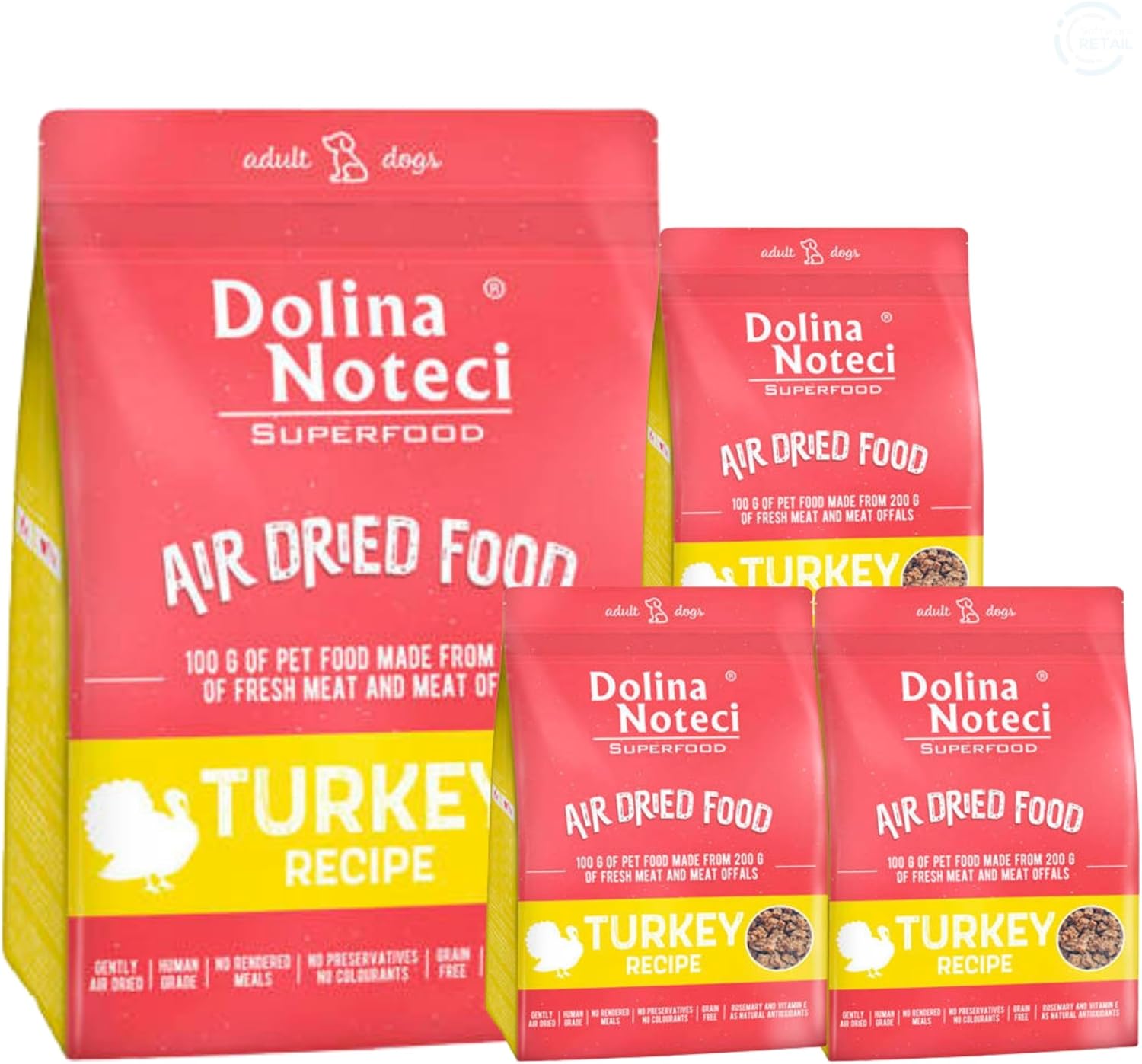 Dolina Noteci Superfood Turkey Dish contains no gluten, synthetic aromas, flavour enhancers, or artificial colourings. Every ingredient is carefully selected to ensure safety, quality, and maximum nutritional benefits for your dog.