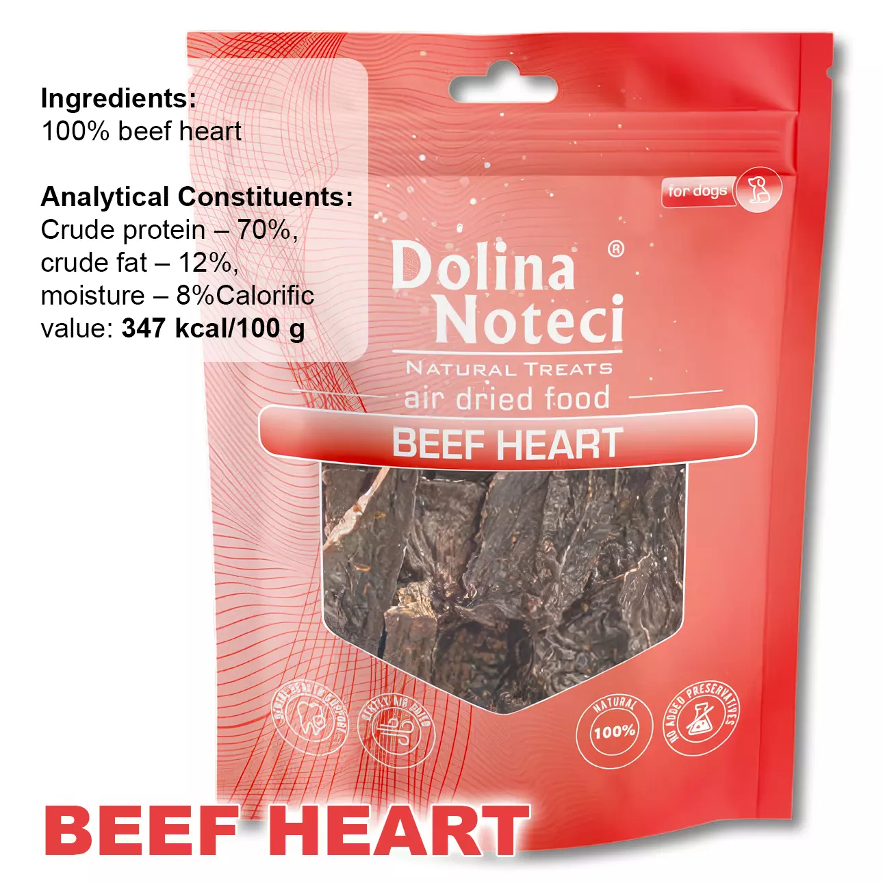 Dolina Noteci Natural Treats Beef Heart is a 100% natural dog treat, crafted to support your pet’s health, vitality and satisfaction. Dried beef heart is not only a delicious snack – it is a nutritious element of a daily diet that delivers essential nutrients, supporting physical condition and immunity.