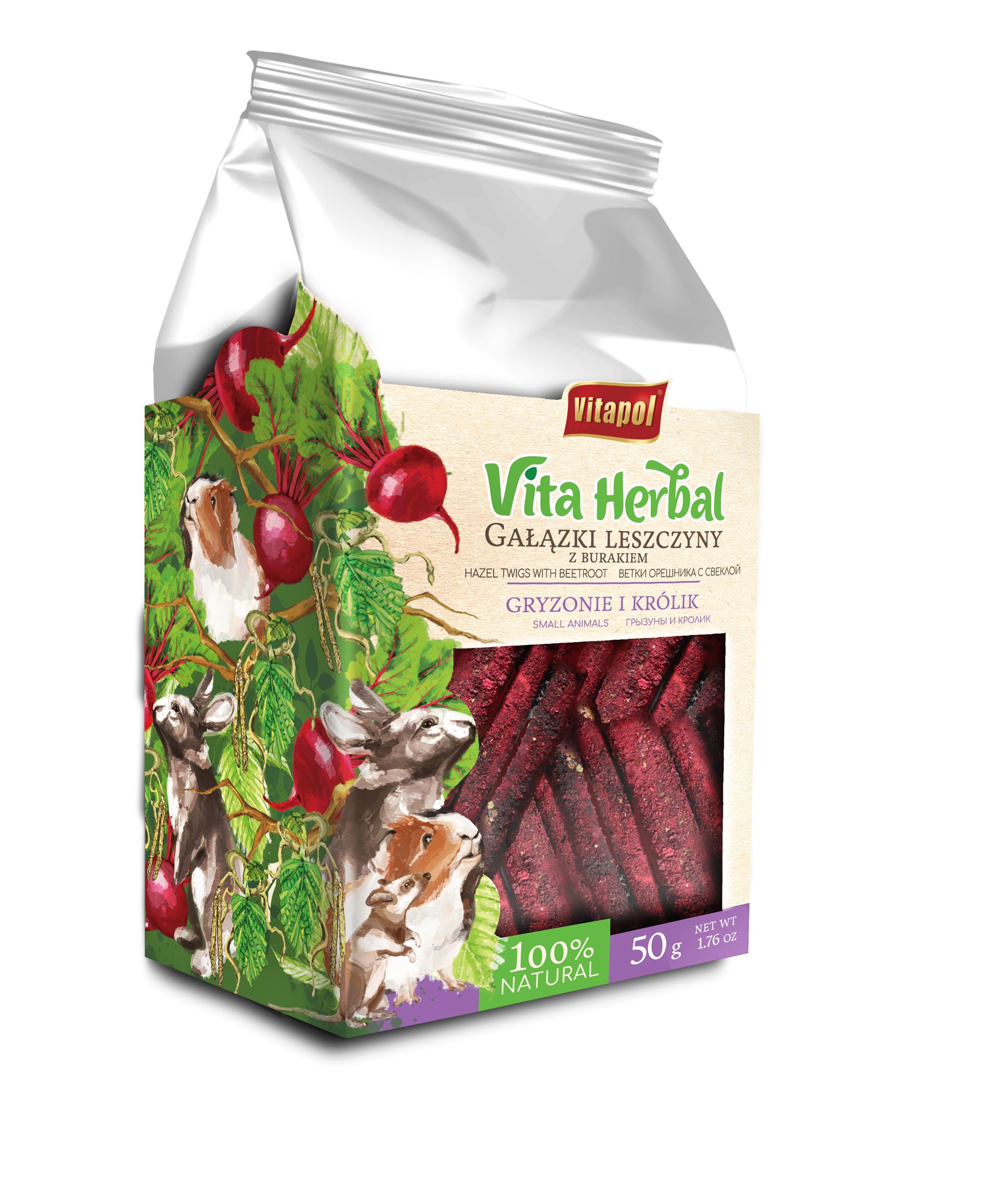 Vita Herbal for rodents and rabbits – hazel twigs with beetroot – 50g